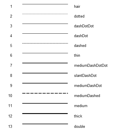 There are still some minor discrepancies from Excel’s borders, such as the double line being a bit too thinner, the dotted line being not as dense as Excel’s etc. But I consider this a step in the right direction. The dashed and medium dashed lines look much better to my eye, and the thicknesses of these lines are more comparable to Excel’s.