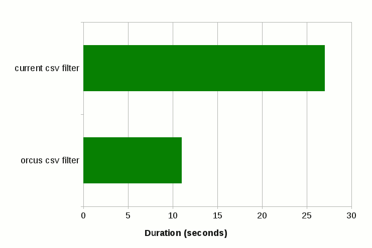 the current filter spends roughly 27 seconds to load this file, which is not too bad given the sheer size of the file (~50Mb). The orcus filter, on the other hand, spends only 11 seconds to load the same file.