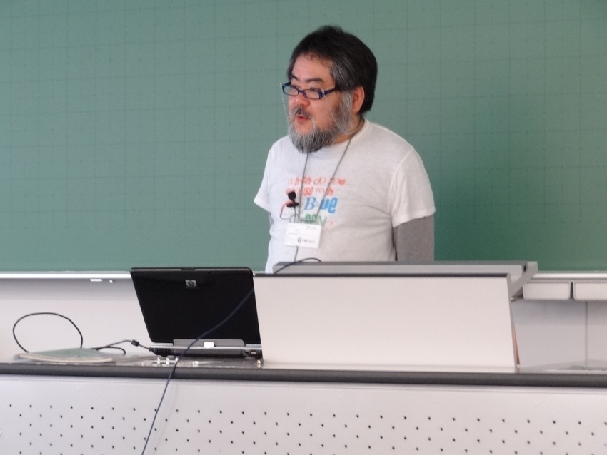 In the next talk, Masahisa Kamataki talked about how to make use of FLOSS office suites such as LibreOffice, combined with non-FLOSS but free as in beer cloud services such as SkyDrive and Google Drive to reduce operation costs. He mentioned that all of this was made possible thanks to the international standard ODF which many major cloud services also support these days. He also demonstrated the level of ODF compatibilities between these cloud services.