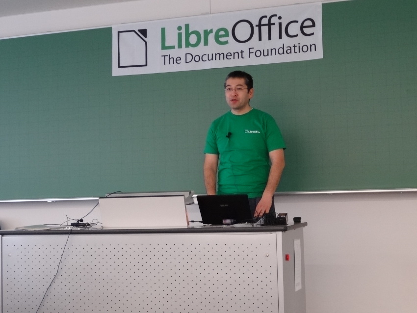 The first talk was by Miyoshi Ohmori, and his talk was about the company-wide migration from OpenOffice.org to LibreOffice at NTT Comware. In his talk, he shared the challenges he faced during the migration and ways to solve them.