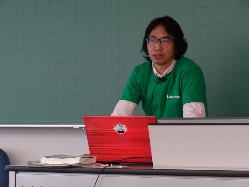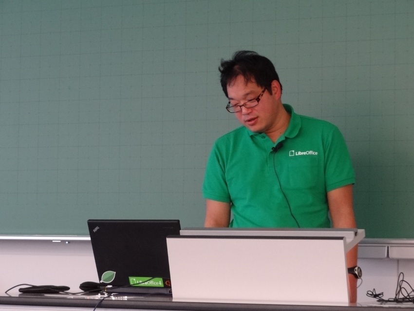 Next up was Ikuya Awashiro. He talked about the specifics of LibreOffice Japanese localization effort. As someone who coordinates the Japanese translation of LibreOffice UI strings, he knows the in’s and out’s of LibreOffice translation which he covered extensively in his talk. He also talked about the detailed history of the translation in this code base, dating back to the old OpenOffice.org days, and how he learned what not to do in order to successfully coordinate the current community-based translation effort in our project.