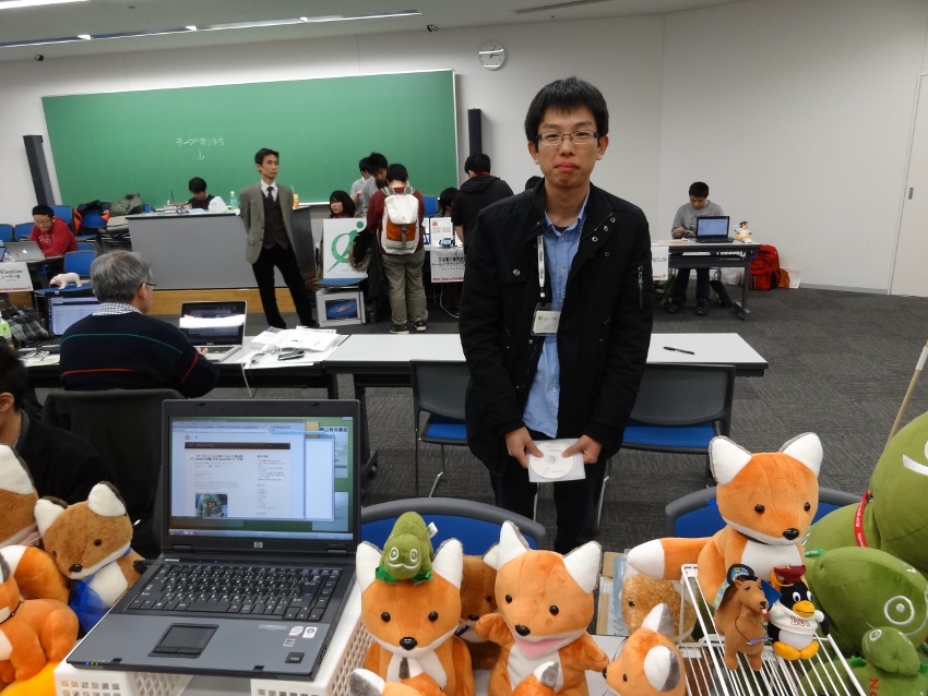 Also present was the openSUSE project booth. Fuminobu Takeyama was single-handedly manning the booth when I dropped by on Friday. He is a volunteer in the openSUSE project who also manages several packages for Japanese locales. We briefly talked about some issues with Japanese input method in LibreOffice, and how some folks work around it by forcing the GTK VCL backend even if LibreOffice is launched in the KDE environment (because the input method code in the GTK VCL backend is more reliable than that in the KDE VCL). He said he is very much hoping to someday find time to look into LibreOffice code, to solve various Japanese-related issues that are still outstanding in the latest release.