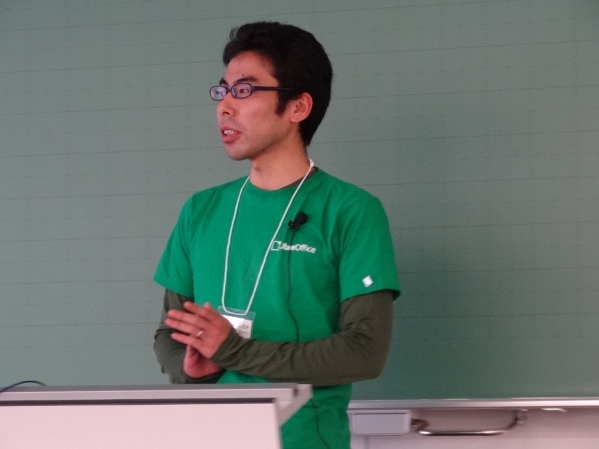 Next up was a talk by Shinji Enoki covering new features in LibreOffice 4.0. He covered all aspects of new features in 4.0, from Firefox Personas support, to Calc’s import filter performance improvement, and everything in-between. His talk was followed by Naruhiko Ogasawara who shared his experience with his trip to the 2nd LibreOffice Conference in Berlin, how he decided to join the LibreOffice community, and how he decided to submit paper for the conference and eventually travel there. During his talk, Ogasawara-san played the video message from Italo that was created specifically for the Japanese audience.